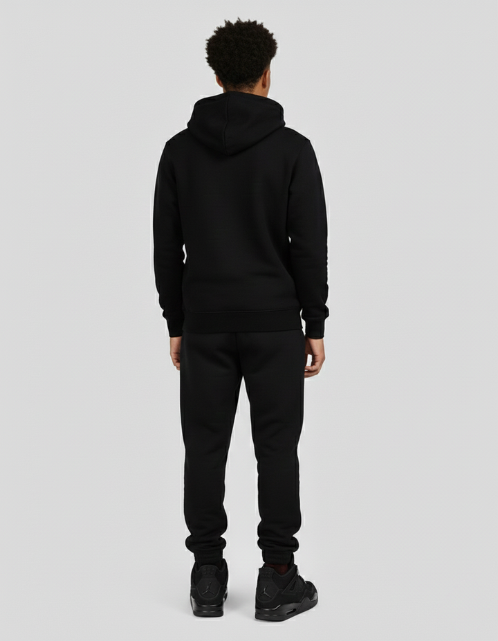 Made from 320–350 GSM heavyweight fleece, it’s soft, warm, and premium — keeping your entire outfit clean and coordinated. Whether you’re styling for a streetwear look, sneaker photos, or everyday flexing, this all-black set gives you that Black Cat vibe effortlessly.
