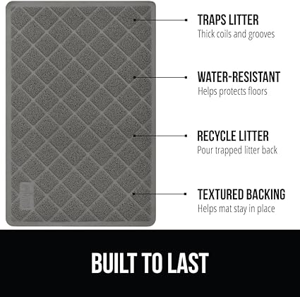 - TEXTURED BACKING HELPS IT STAY IN PLACE: while other mats may shift around as your cat exits their litter box, resulting in litter all over your floors, our mat is designed with a textured backing that helps it to stay in place, even with active cats