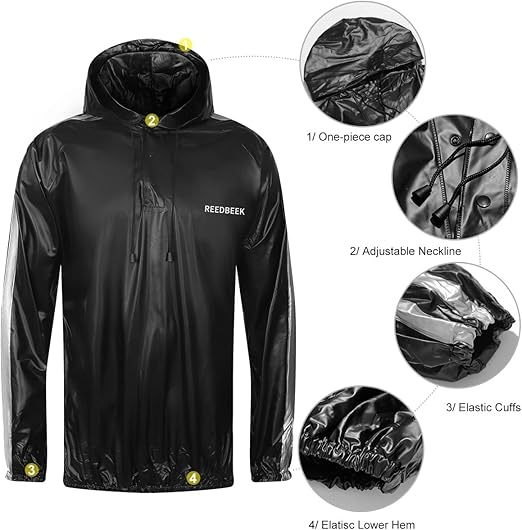- ★WINDPROOF & WATERPROOF - Wear all seasons: The REEDBEEK sauna suit performs well in windproof and waterproof, maintains body temperature, accelerates sweating.