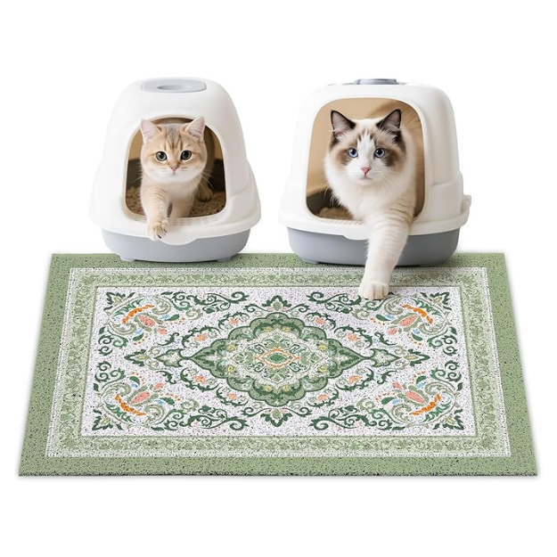 - Non-Slip Backing: Equipped with a non-slip, the litter box mat stays securely in place to prevent litter from leaking onto floors; The litter trappings mat also protects your floors from scratches and wear caused by sliding, ensuring a tidy and secure environment