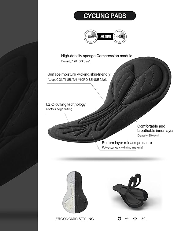 - 【Lycra fabric of shorts】 Shorts are made of Lycra fabric, which is of strong elasticity and makes you feel comfortable.The shorts are also stitched with a comfortable and breathable padding that reduces friction between the hips and the bike seat.